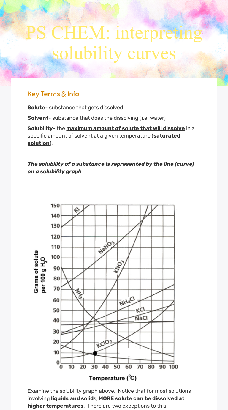 It is designed to help students link chemical computations with authentic laboratory chemistry. The beginning of the vertical region of the graph. The virtual lab is an online simulation of a chemistry lab. For professional homework help services, assignment essays is the place to be. What is less soluble in 100 g of water at 10°c sodium nitrate or sodium chloride? Refer to graph to answer the following questions: The point halfway on the vertical region of the graph. Whether you are looking for essay, coursework, research, or term paper help, or help with any other assignments, someone is always available to help. Interpreting solubility curves how to read a solubility curve? But if you have a sense of what to expect on the ap chemistry test well in advance, you'll be able to prepare appropriately for it. Learn what solubility is as well as the definitions of 'saturated,' 'unsaturated' and 'supersaturated.' learn how to determine the solubility of a substance in water by using a solubility curve. Questions to test your understanding if this is the first set of questions you have done, please read the introductory page before you start. In order to check the solubility, select a part of the solution, remove acetonitrile by evaporation, and determine the li2s content by energy dispersive analysis.